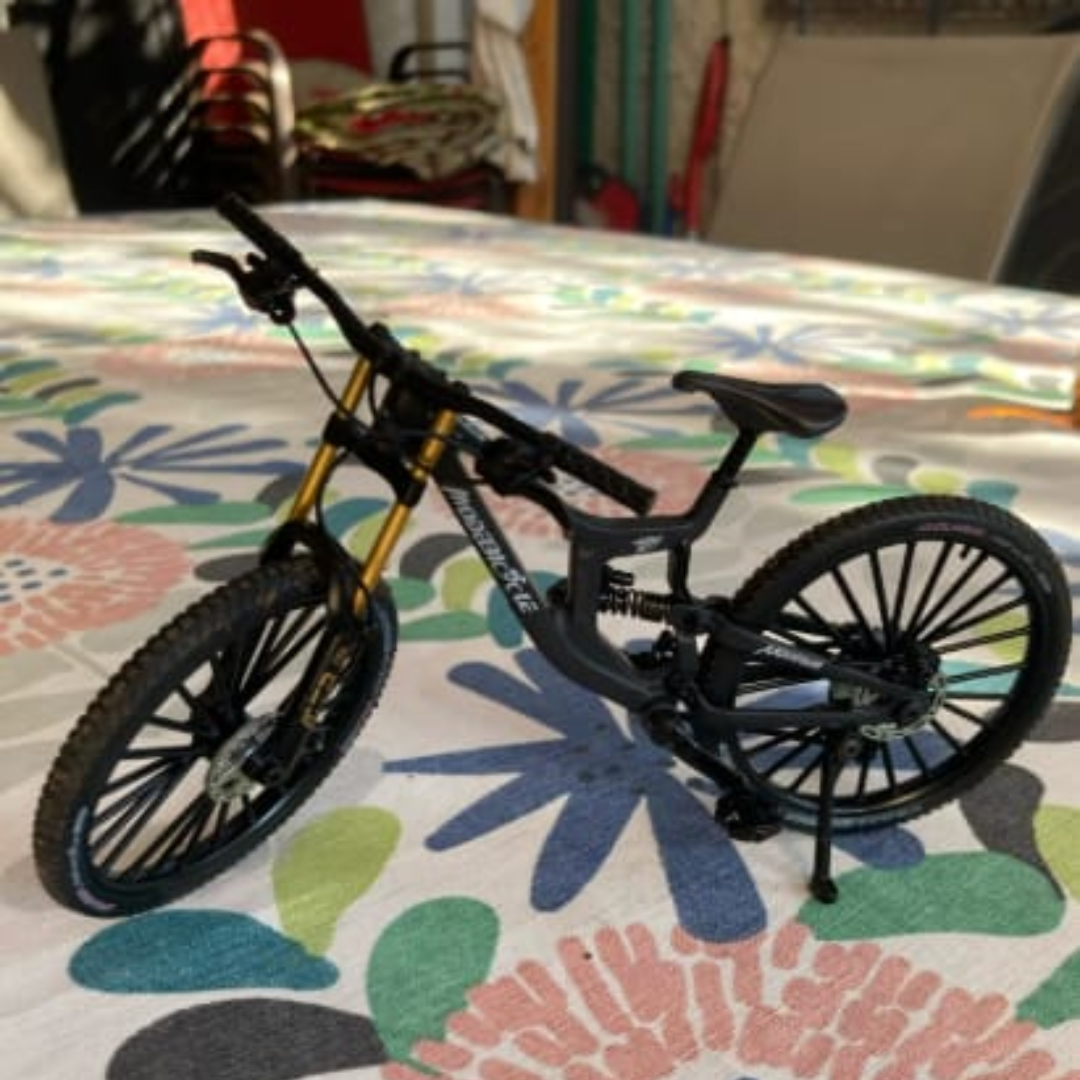 To nie statyczna figurka. Gdy poruszysz pedałami lub kołem, zobaczysz, jak pracuje napęd i zawieszenie. Model wygląda i zachowuje się jak prawdziwy rower. Możesz go oglądać z bliska, testować mechanikę albo z dumą ustawić na półce.