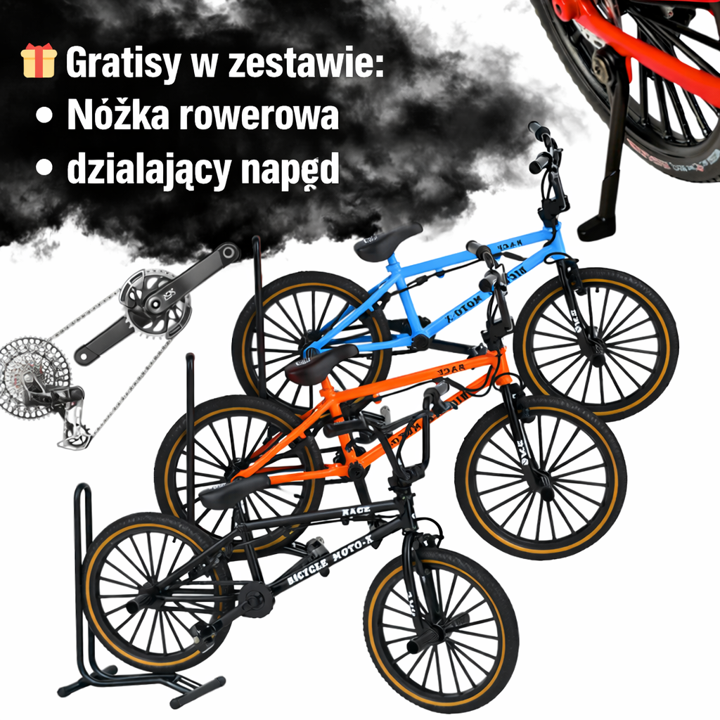 W zależności od wybranego modelu dostaniesz miniaturowy rower (downhill, enduro, MTB lub szosowy) w skali 1:6. Każdy model ma realistyczne detale oraz ruchome elementy, takie jak amortyzacja czy napęd.